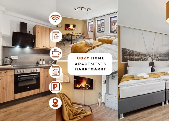 Das 1-Zimmer-Cozyhome Hauptmarkt Apartment liegt im alten Teil von Gotha und empfängt seine Gäste mit modernen Einrichtungen wie WLAN und wichtigen Annehmlichkeiten wie Parkplätzen. Dieses 50 m^2 große Apartment liegt ungefähr 25 Gehminuten vom Tierpark Gotha entfernt und bietet Zugang zum Hauptbahnhof.